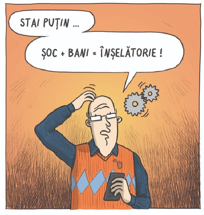 DACĂ PRIMEȘTI O VESTE ȘOCANTĂ, RESPIRĂ ÎNTÂI ADÂNC! UN MESAJ-ȘOC ÎNSOȚIT DE O SOLICITARE DE BANI ESTE ÎNTOTDEAUNA O ÎNȘELĂTORIE. UN ALT INDICIU ESTE FAPTUL CĂ ESCROCII EXERCITĂ PRESIUNE, PRETINZÂND CĂ DACĂ NU PLĂTEȘTI, SE ÎNTÂMPLĂ CEVA GRAV. VERIFICĂ MEREU SURSA. ÎN CAZUL UNUI APEL-ȘOC, ÎNCHIDE IMEDIAT CONVORBIREA ȘI CONTACTEAZĂ DIRECT SPITALUL SAU INSTITUȚIA MENȚIONATĂ, FOLOSIND NUMERELE OFICIALE AFIȘATE PE SITE-UL LOR, PENTRU A CONFIRMA SITUAȚIA.