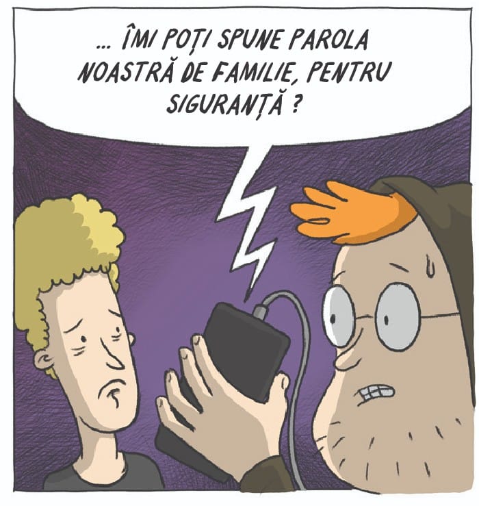 RĂMÂI VIGILENT ÎN CAZUL CERERILOR CIUDATE, CHIAR DACĂ CINEVA PRETINDE CĂ ESTE MEMBRU DE FAMILIE. VERIFICĂ ÎNTOTDEAUNA IDENTITATEA PERSOANEI ÎNAINTE DE A DIVULGA INFORMAȚII PERSONALE SAU DE A TRIMITE BANI. STABILEȘTE ÎMPREUNĂ CU FAMILIA TA O PAROLĂ PE CARE SĂ O ȘTIȚI DOAR VOI.